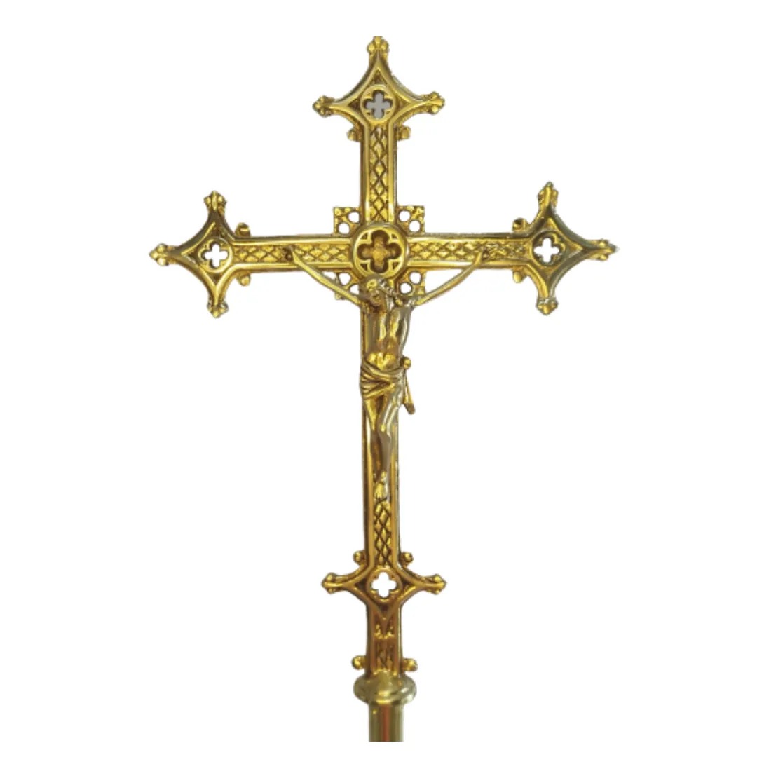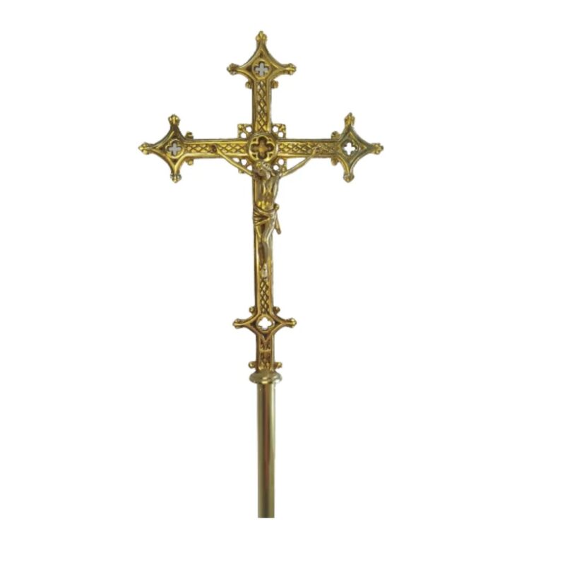 Cruz Processional Italiana. Fabricada em latão fundido com banho de ouro e prata. Não acompanha base.