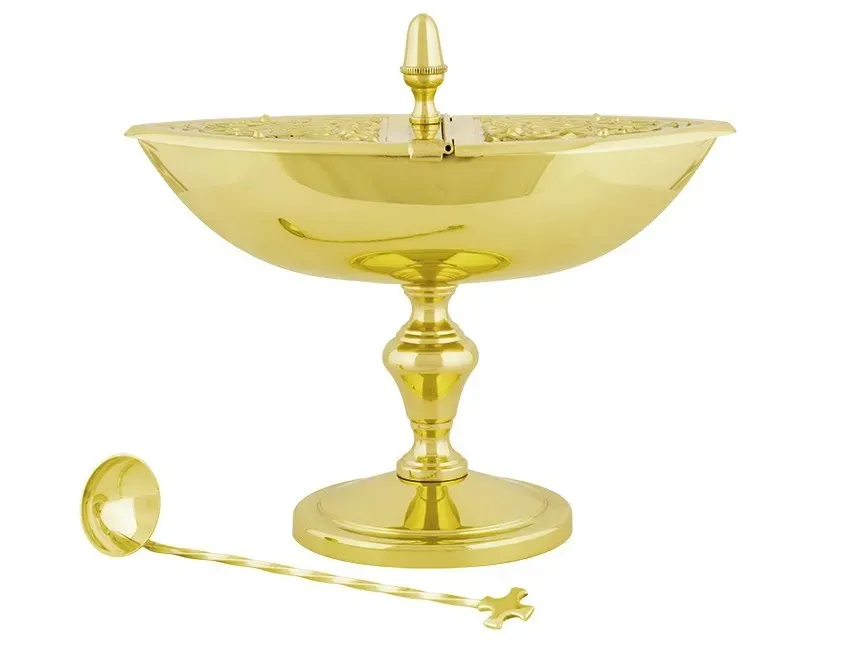 Para a Celebração Eucarística, a naveta deve ser apresentada ao sacerdote para que este imponha o incenso sobre as brasas no turíbulo.