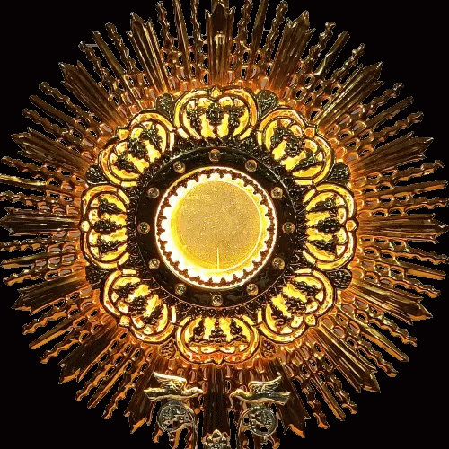 Essa belíssima obra de arte, possui um led recarregável, com duração de mais de duas horas, realçando ainda mais a beleza eucarística.