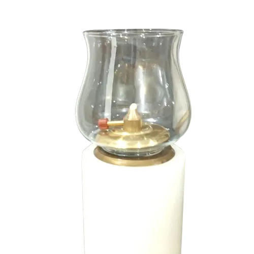 Feita em parafina, com recipiente interno, onde se coloca o fluído. Acompanha gratuitamente um protetor de chamas