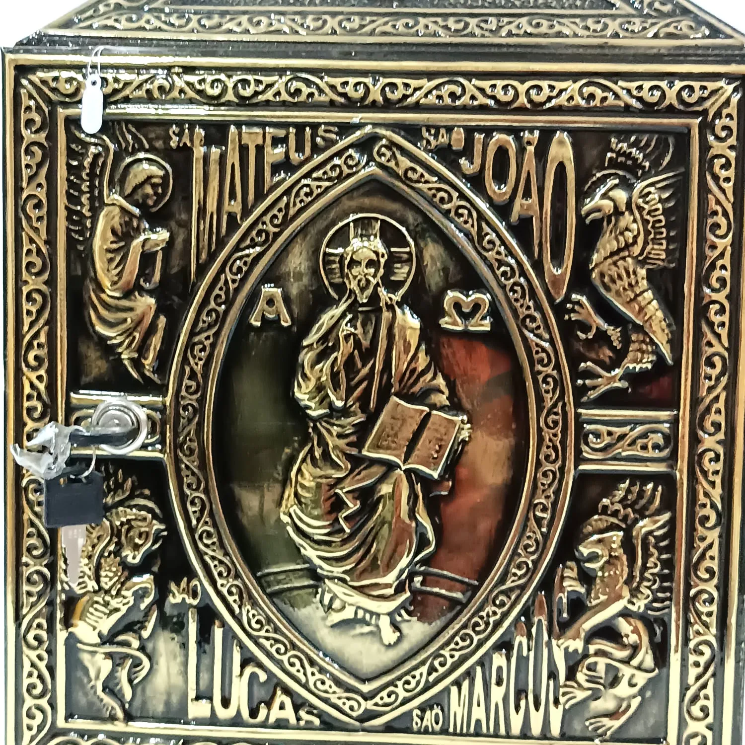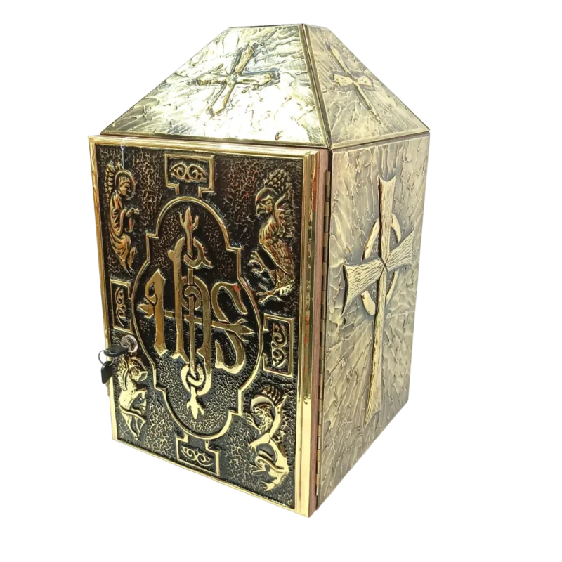 Sacrário Econômico Peixes e Pão Dourado 30x30cm