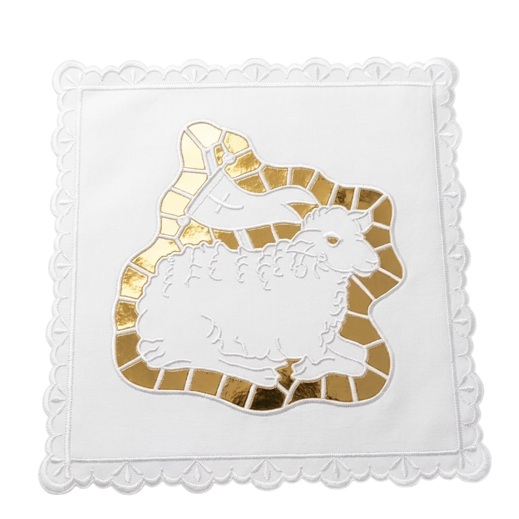 Pala e corporal confeccionados com tecido resistente a manchas.