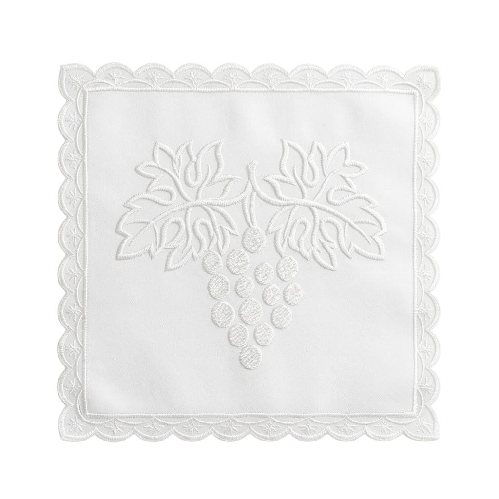 Conjunto de Alfaia bordada Uvas o é feito com bordado de altíssima qualidade – Bordado perfeito – Purificador e toalha em tecido de algodão branco neve, bem absorvente, 100% algodão.