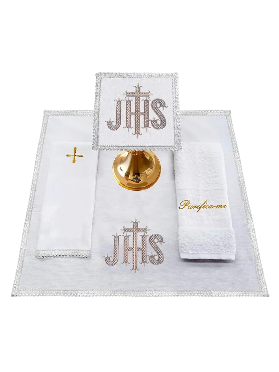 Belíssimo conjunto de alfaia, completo, com o corporal um pouco maior que a média. Esse conjunto é bordado! Opção digna e bela.
