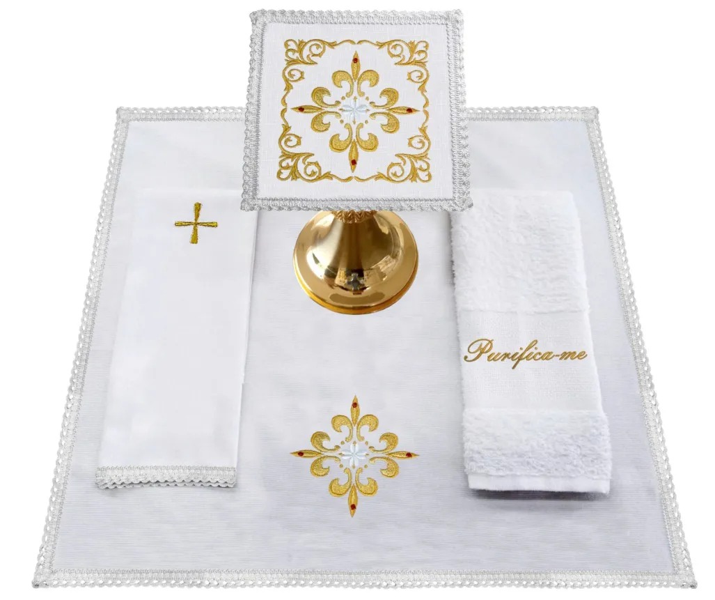 Belíssimo conjunto de alfaia, completo, com o corporal um pouco maior que a média. Esse conjunto é bordado! Opção digna e bela.