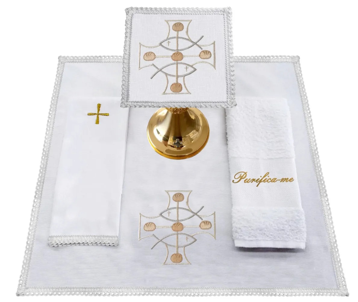 Belíssimo conjunto de alfaia, completo, com o corporal um pouco maior que a média. Esse conjunto é bordado! Opção digna e bela.