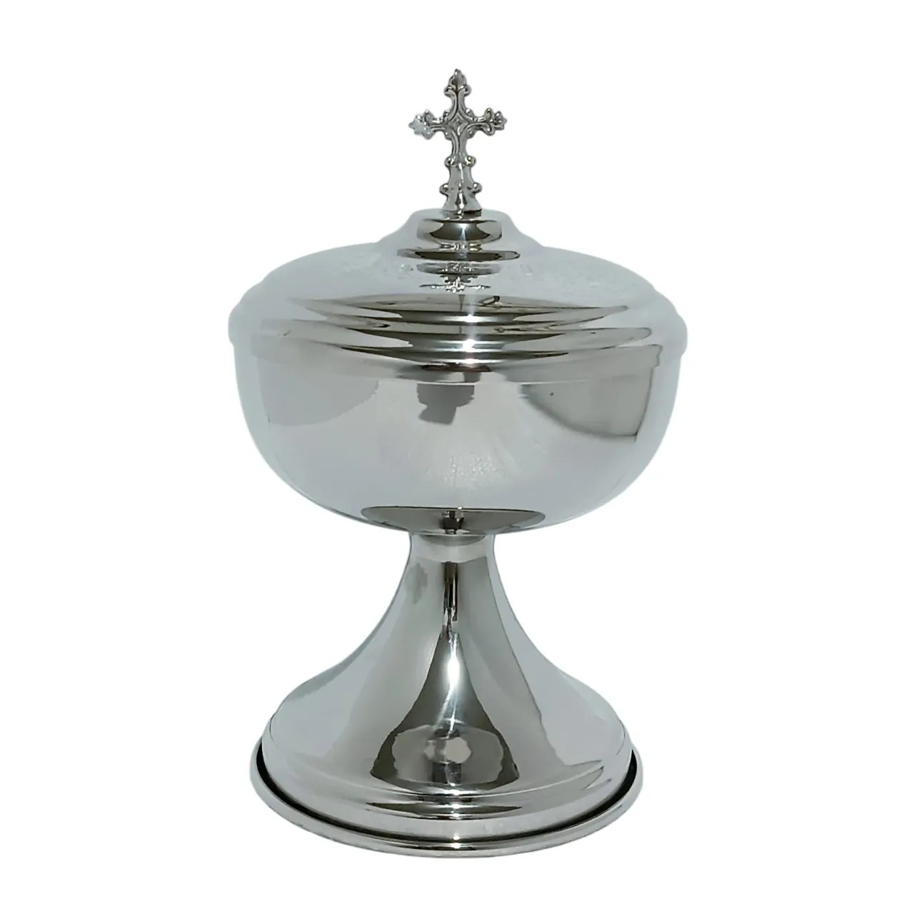 Âmbula produzida em liga metálica de latão com banho de níquel. Polimento especial, banho de níquel e verniz protetor