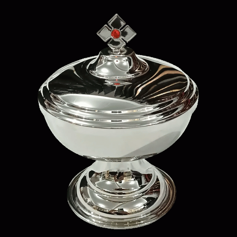 Âmbula produzida em liga metálica de latão com banho de níquel. Polimento especial, banho de níquel e verniz protetor