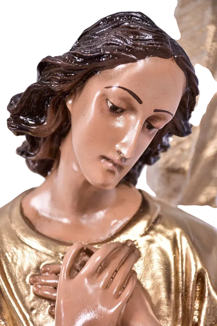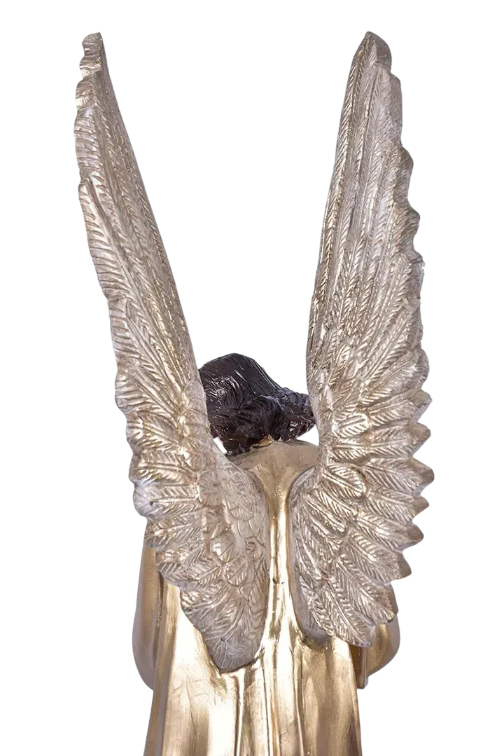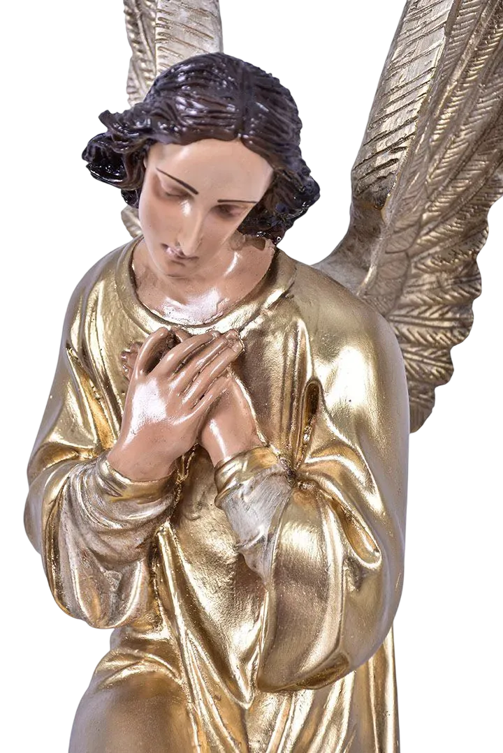 Imagens de Anjos Adoradores fabricadas em resina com acabamento em pintura fina feita artesanalmente com tinta acrílica a base de água, com manto na cor dourada. Imagens para ambiente interno.