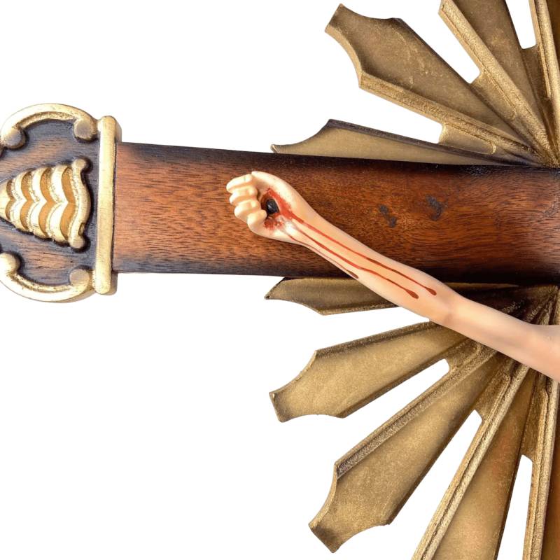A cruz fabricada em madeira maciça de ótima qualidade, que garante a beleza e a durabilidade da peça. A imagem de Cristo crucificado é fabricada em resina com acabamento em pintura fina feita artesanalmente com tinta acrílica a base de água. Produto para ambiente interno.