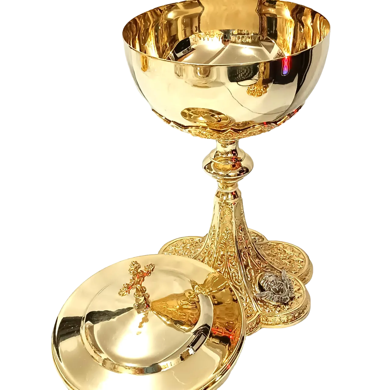 Âmbula produzida em liga metálica com banho de ouro 24k, destacando-se pelo seu estilo barroco francês. Totalmente trabalhada na base e na copa, esta peça é uma verdadeira obra de arte, única em seu design e detalhes refinados.