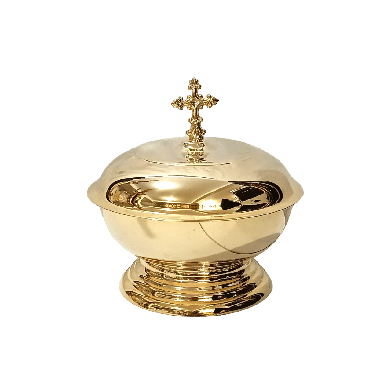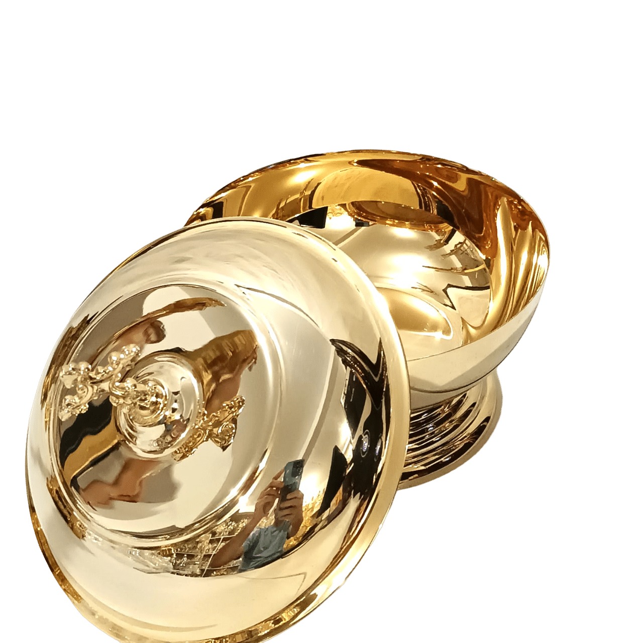Âmbula para distribuição feita em latão e banhada a ouro. Capacidade de até 200 partículas de 3,3cm