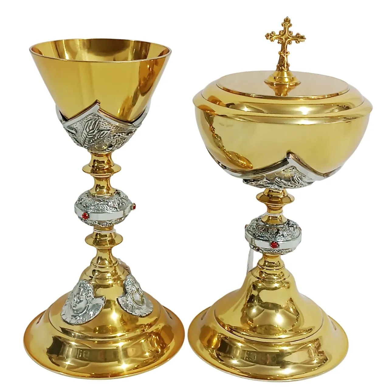 O conjunto de Âmbula e Cálice com Anjo na Base F529C/189A é produzido em estanho com banho dourado. Produto com garantia de 5 anos.
