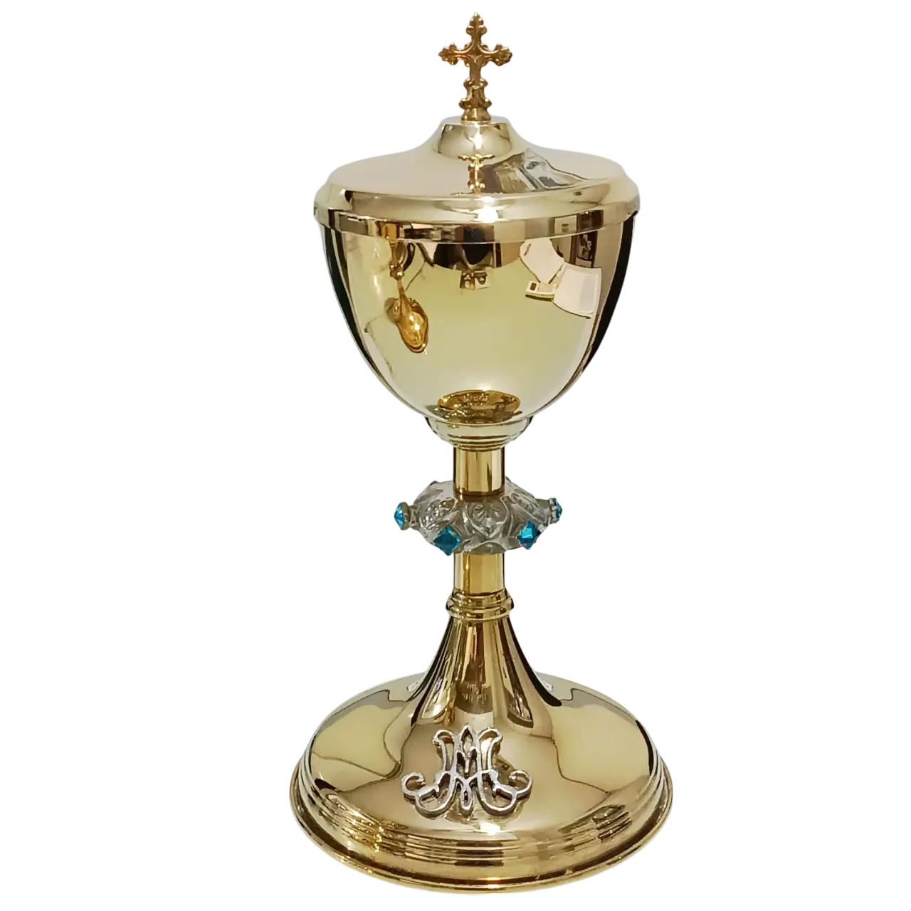 A Âmbula Mariana é uma opção de vaso sagrado singelo e digno. Ela carrega em sua base o símbolo Mariana. Em sua coluna pedras azuis (cor mariana).