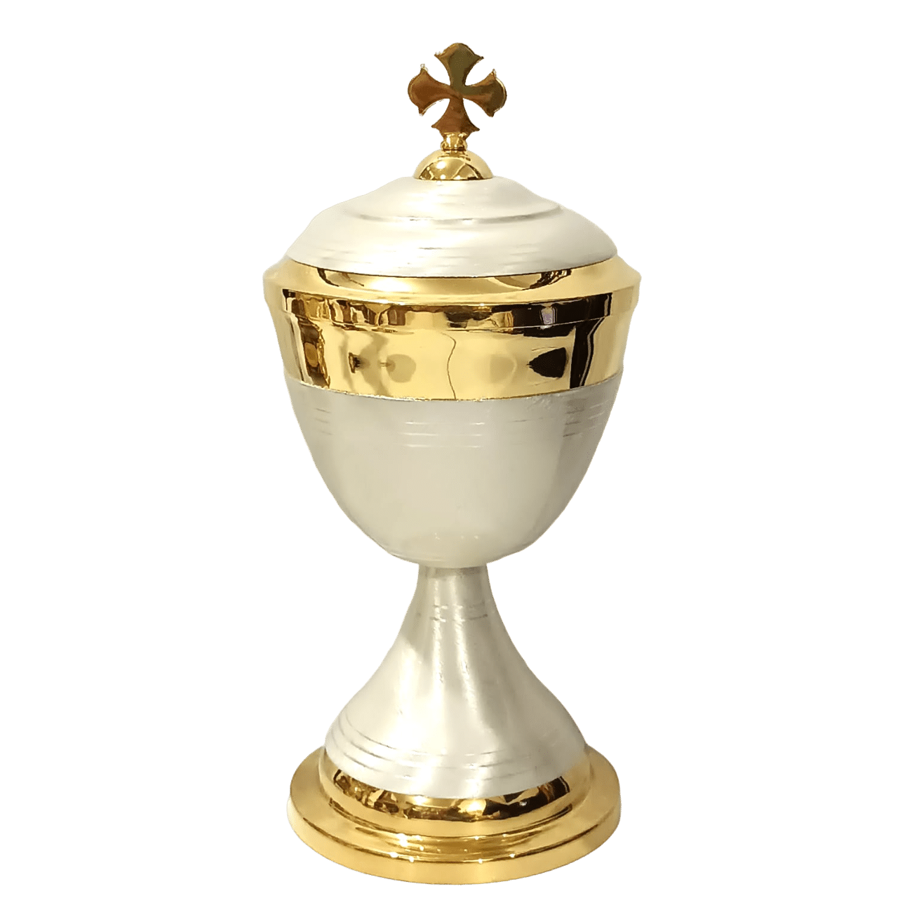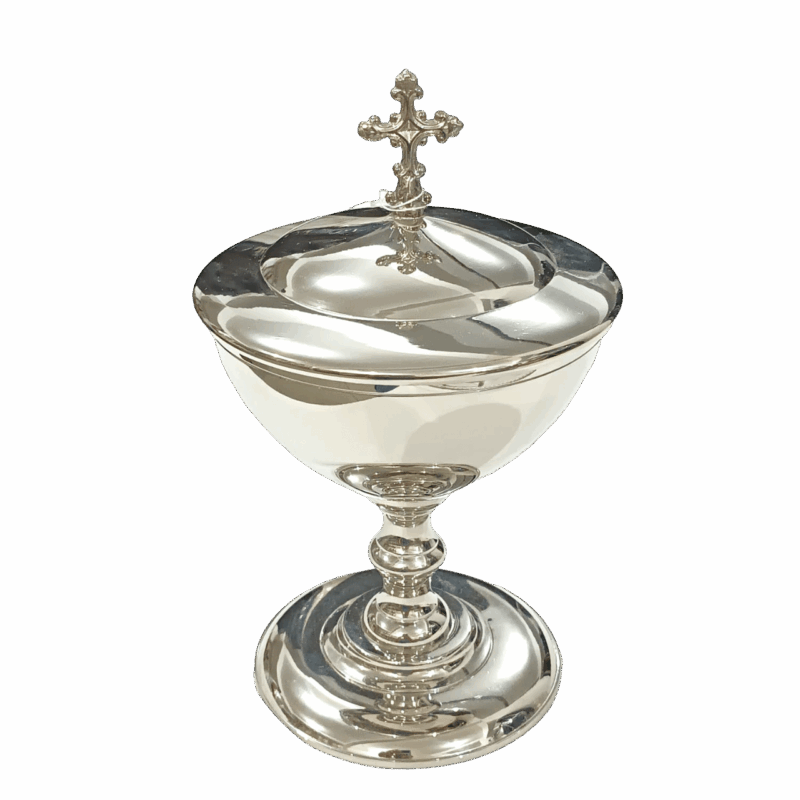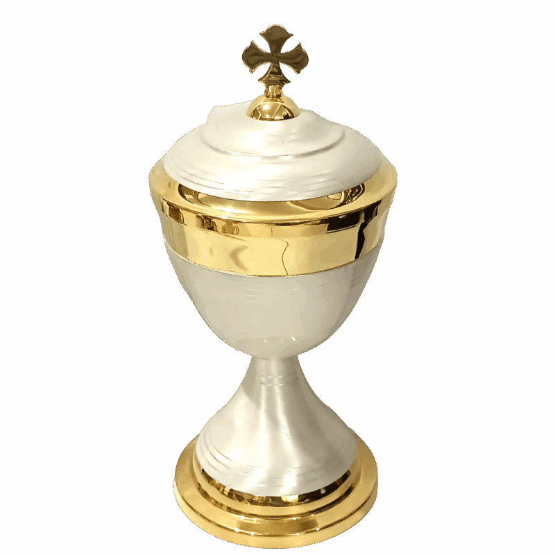 A peça foi pensada para oferecer praticidade no uso, com excelente proporção e base estável, garantindo segurança durante o manuseio e armazenamento das hóstias consagradas.