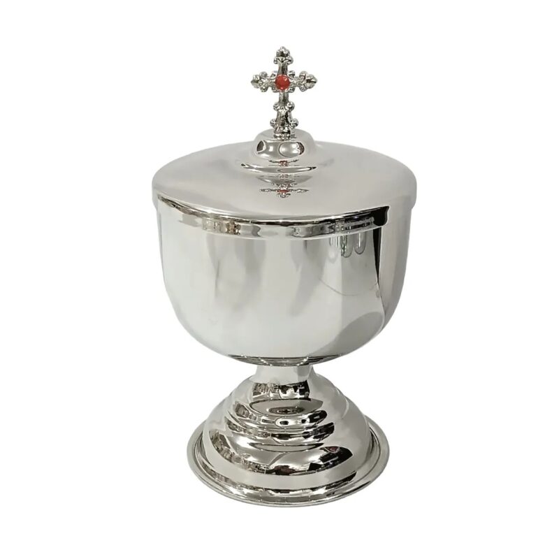 A Âmbula para Distribuição é uma peça litúrgica utilizada para a guarda e distribuição das hóstias consagradas durante a celebração da Eucaristia. Com design elegante e acabamento refinado, esta peça foi desenvolvida para unir beleza, reverência e funcionalidade no serviço do altar.