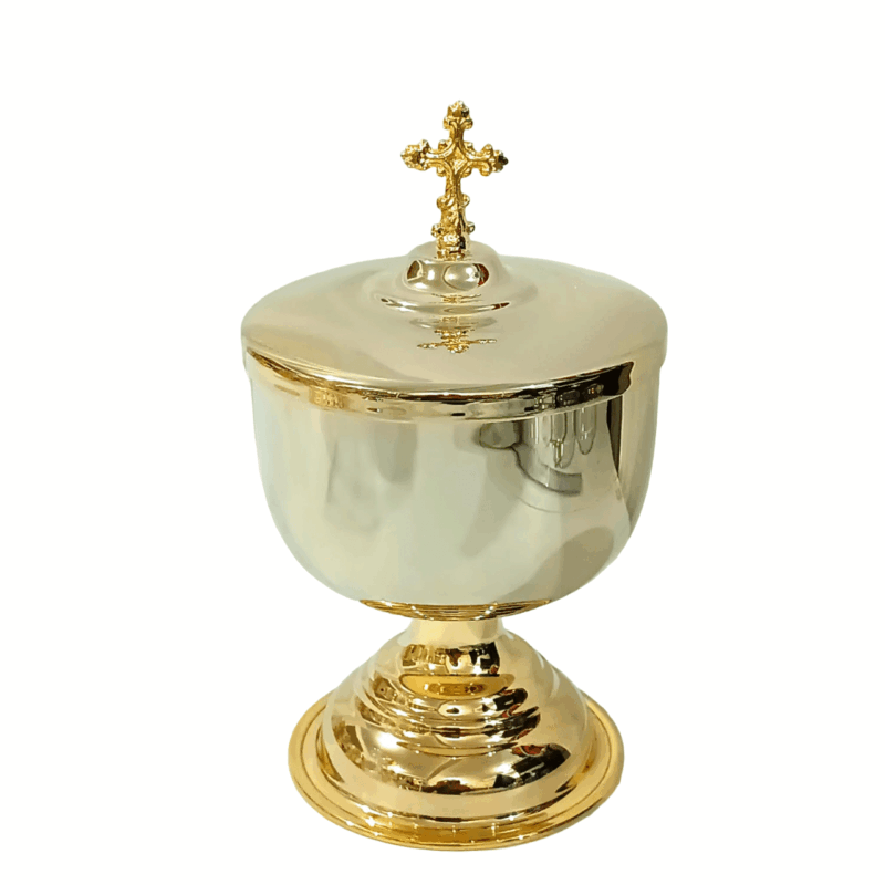 A Âmbula para Distribuição é uma peça litúrgica utilizada para a guarda e distribuição das hóstias consagradas durante a celebração da Eucaristia. Com design elegante e acabamento refinado, esta peça foi desenvolvida para unir beleza, reverência e funcionalidade no serviço do altar.