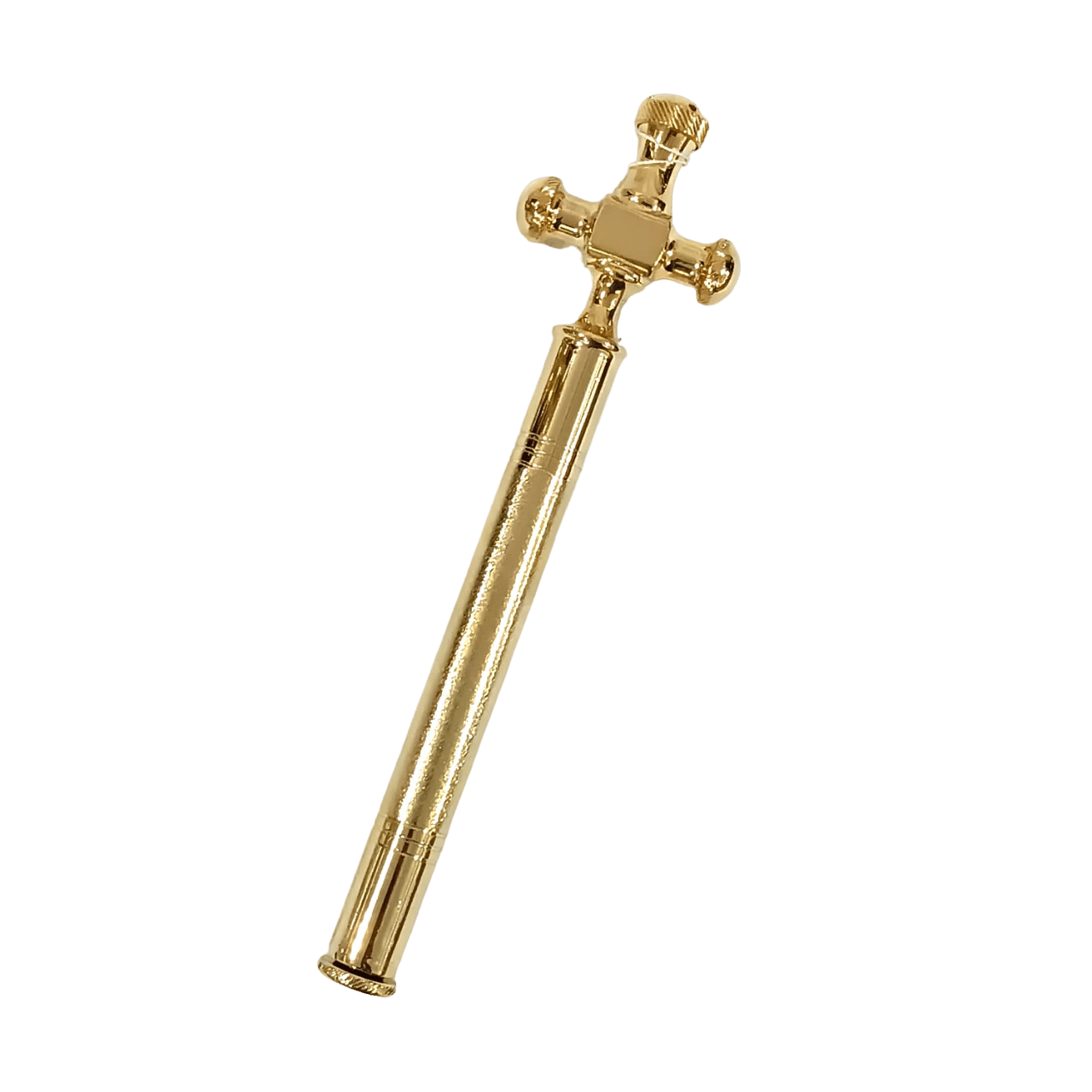 Aspersório Que Retém Água ap03 – com cruz. Em metal, com banho a ouro 24k