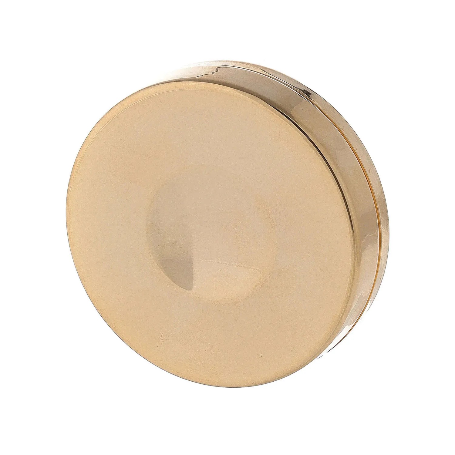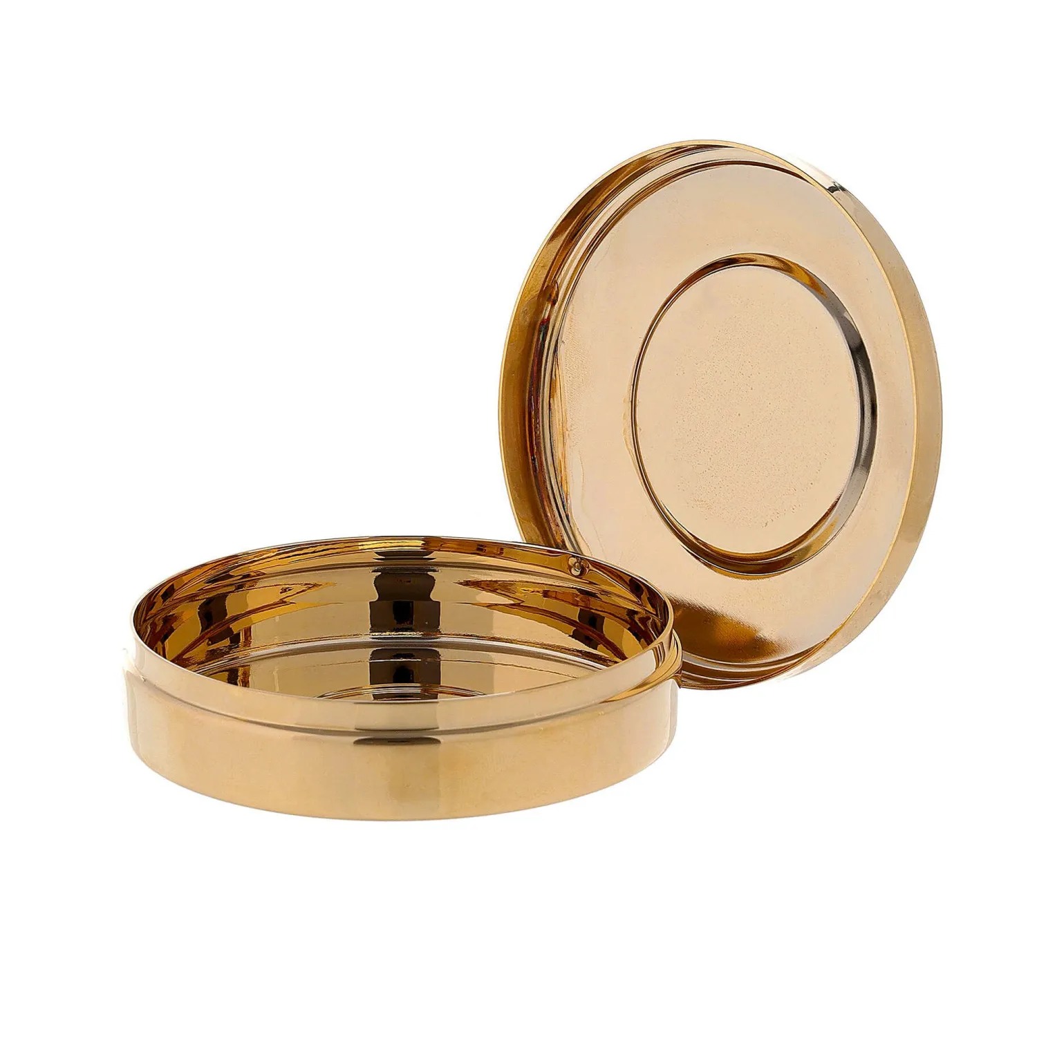 Caixa para hóstias em latão banhado a ouro com símbolo IHS na tampa.