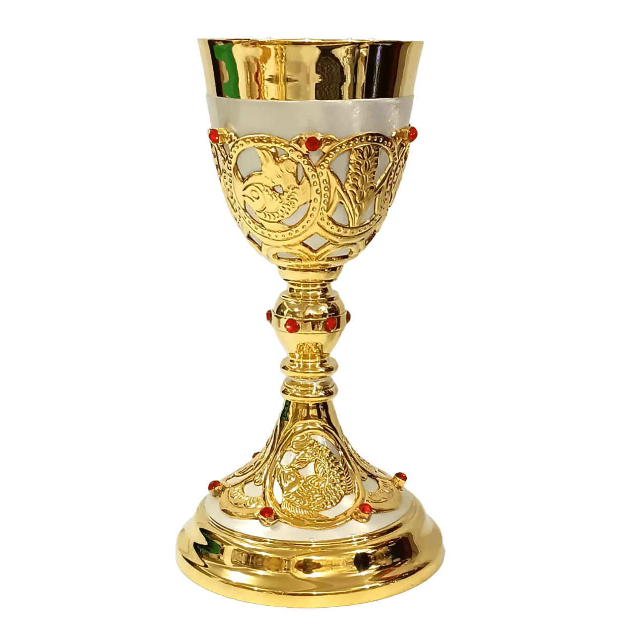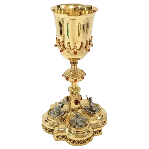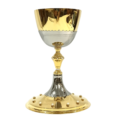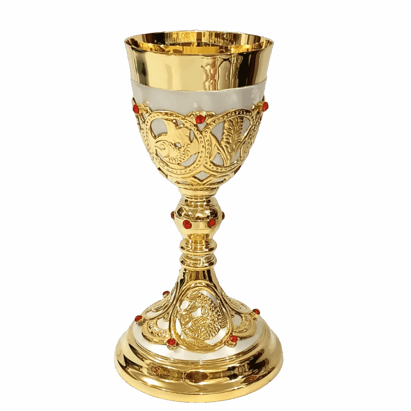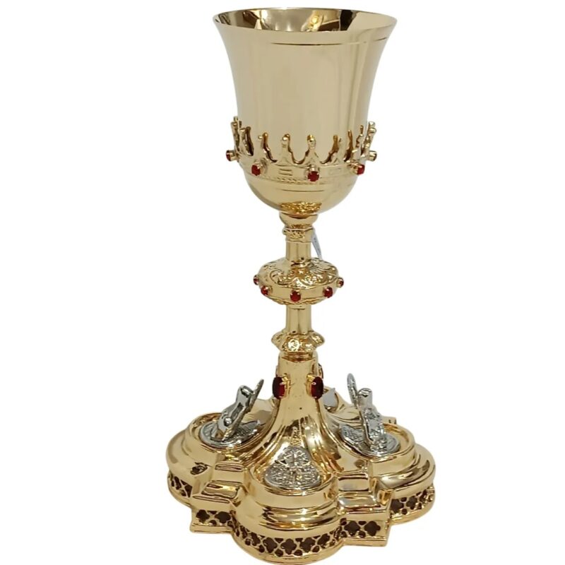 A copa harmoniosamente estruturada, com diâmetro de 10 cm e profundidade de 10 cm, oferece excelente capacidade e apresenta acabamento interno liso, proporcionando dignidade e reverência no uso litúrgico. Seu formato clássico contribui para uma experiência visual elegante durante a celebração.