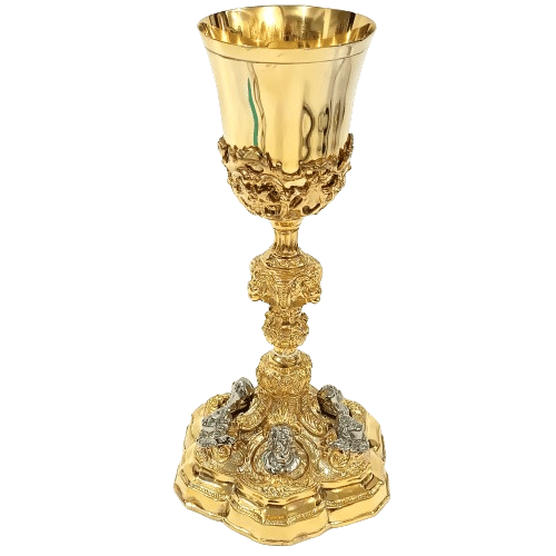 O Cálice Elegância Barroca é uma peça que traduz com perfeição a riqueza artística e a tradição da arte sacra, sendo ideal para igrejas que buscam elevar a solenidade das celebrações com beleza e imponência. Seu design é inspirado no estilo barroco, marcado por detalhes ornamentais sofisticados e acabamento refinado, que conferem à peça um visual nobre e atemporal.