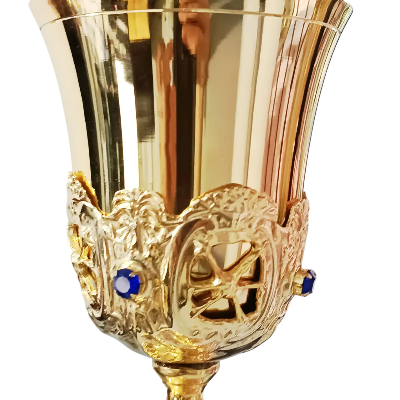 Na grade do copo do cálice, temos os Instrumentos da Paixão (Arma Christi): a escada, a lança, a esponja com vinagre, o martelo, os cravos e a coluna a qual Cristo foi flagelado.