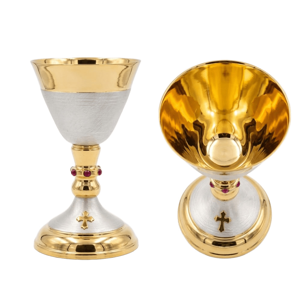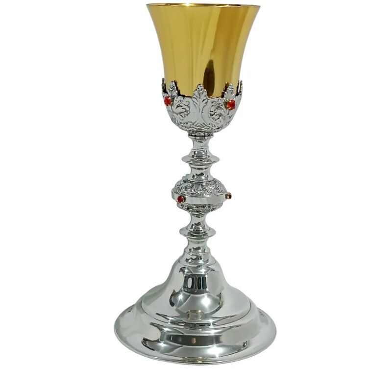 Cálice Bianco Rubi – Elegância Litúrgica com Pedras Vermelhas