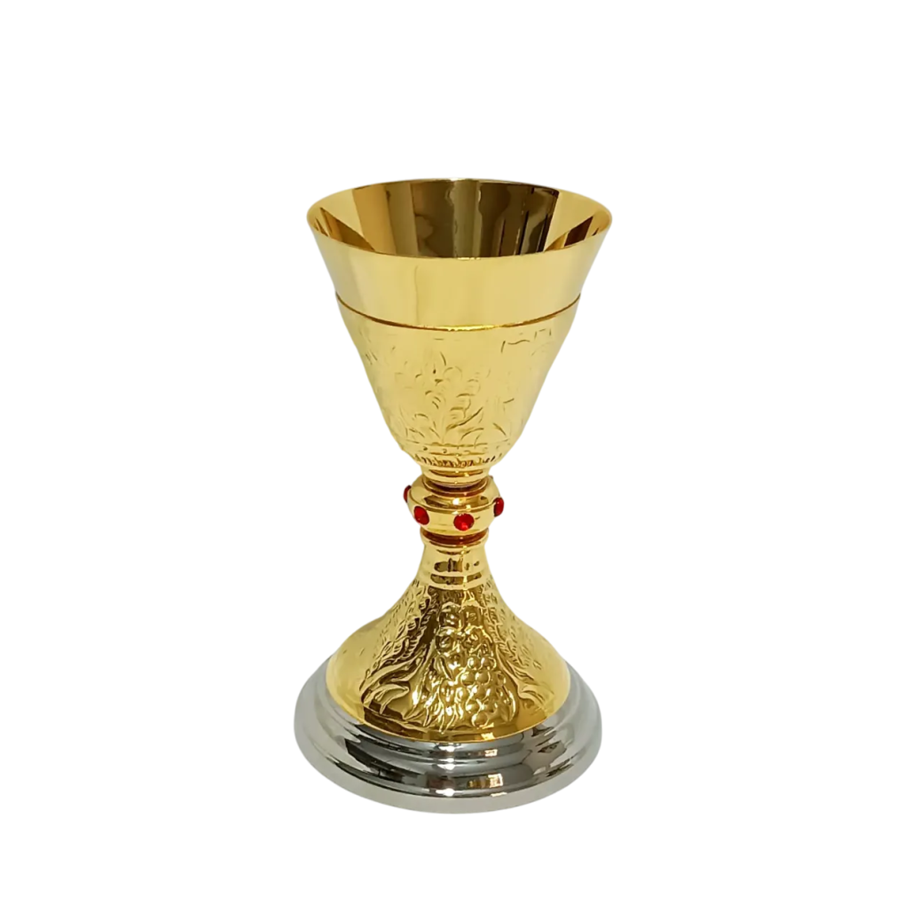 Cálice Litúrgico Cinzelado com Pedras Vermelhas – Produção Artesanal Italiana