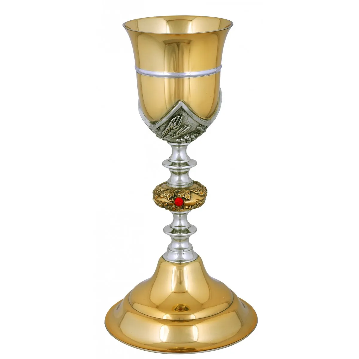 O Cálice Dourado com Anjo na Base F529b é produzido em estanho polido com banho dourado. Trabalhado em relevo na copa, miolo da haste e na base. Não acompanhado da patena.