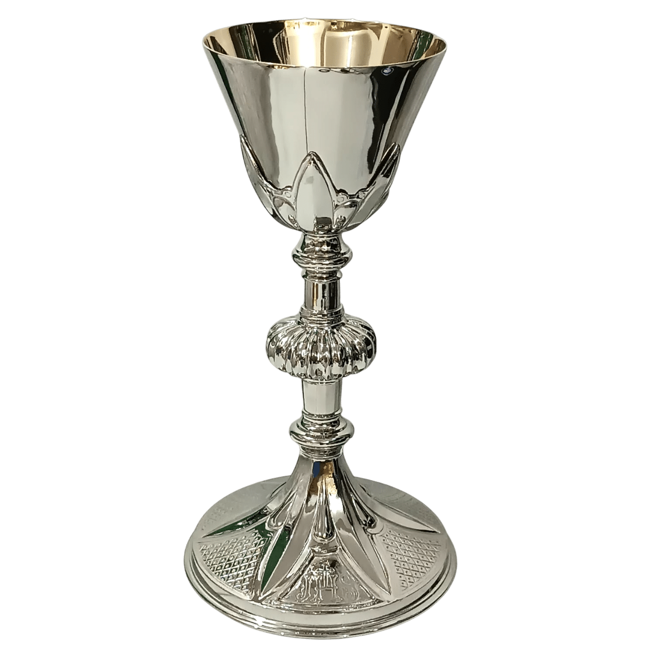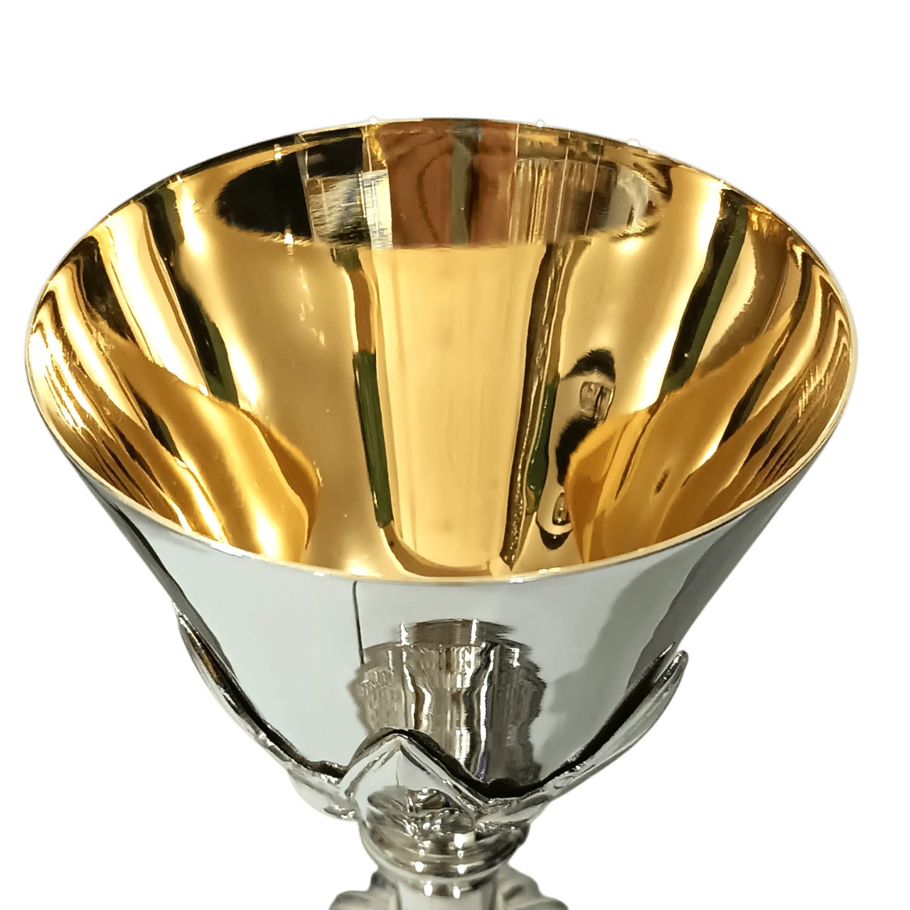 Produzido em latão, com banho de níquel e cinzelado à mão. Interior banhado a ouro