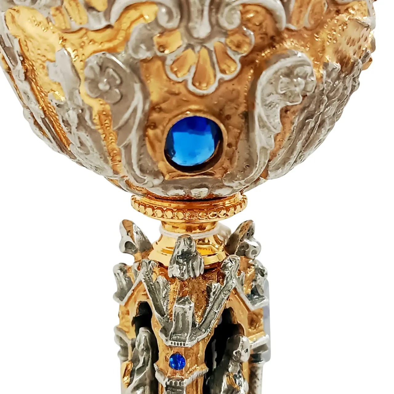 Cálice Italiano Imaculada Conceição – Banhado a Ouro 24k e Prata Envelhecida (33 cm)