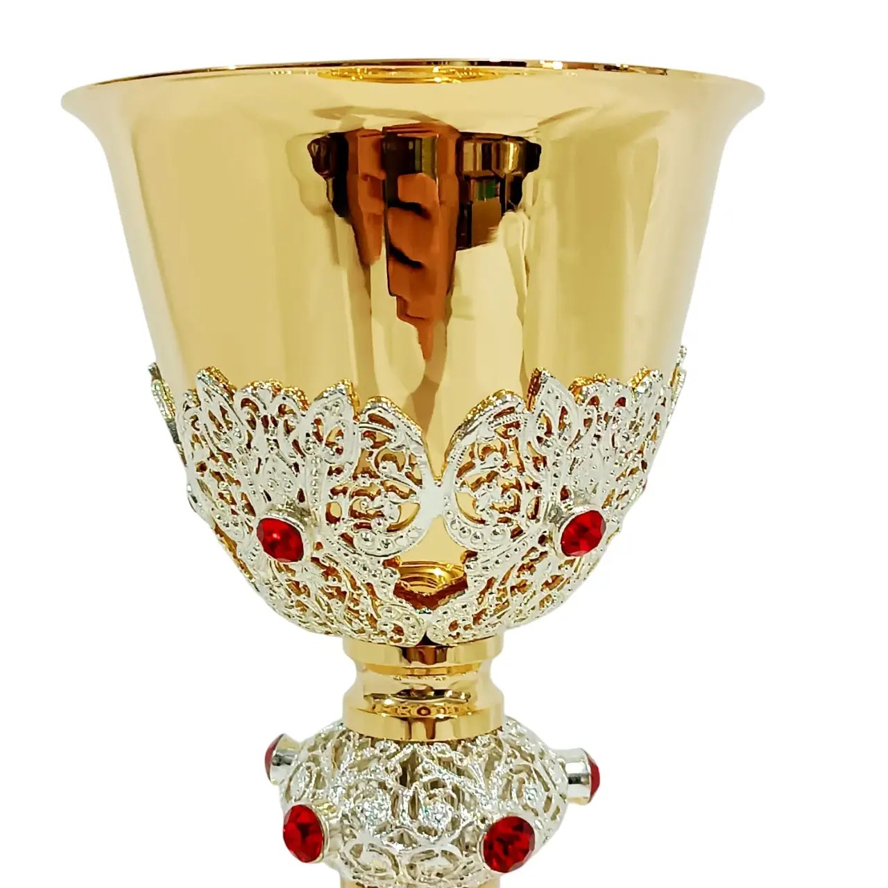 Esse cálice sagrado, com pedras vermelhas, importado de altíssima qualidade auxilia-lhe ao encontro sublime com o Divino. Feito com respeito e devoção, esse símbolo sagrado da Eucaristia, representa a presença real de Cristo durante a comunhão. Ao segurar esse cálice nas suas mãos, você sentirá uma profunda reverência e gratidão, permitindo que o seu coração permaneça fixo na sua missão espiritual. Adquira-o agora e deixe a sua adoração se elevar a novas alturas.