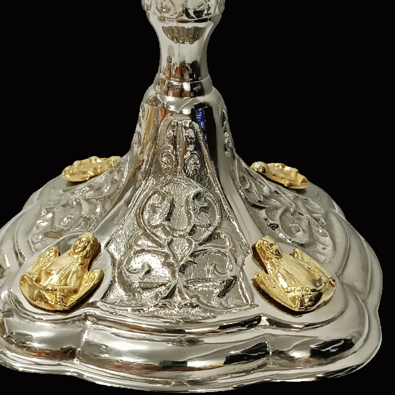 - Design Barroco: O banho prateado e a forma no estilo barroco, mais os anjos na base fazem deste cálice uma peça algo único, destacando-se pela beleza e significado espiritual.