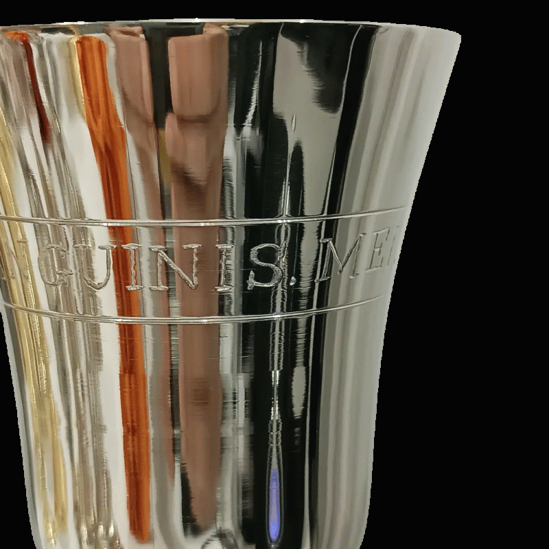 - Frase Gravada: A frase latina gravada no cálice reforça a solenidade e o propósito sagrado deste item litúrgico.