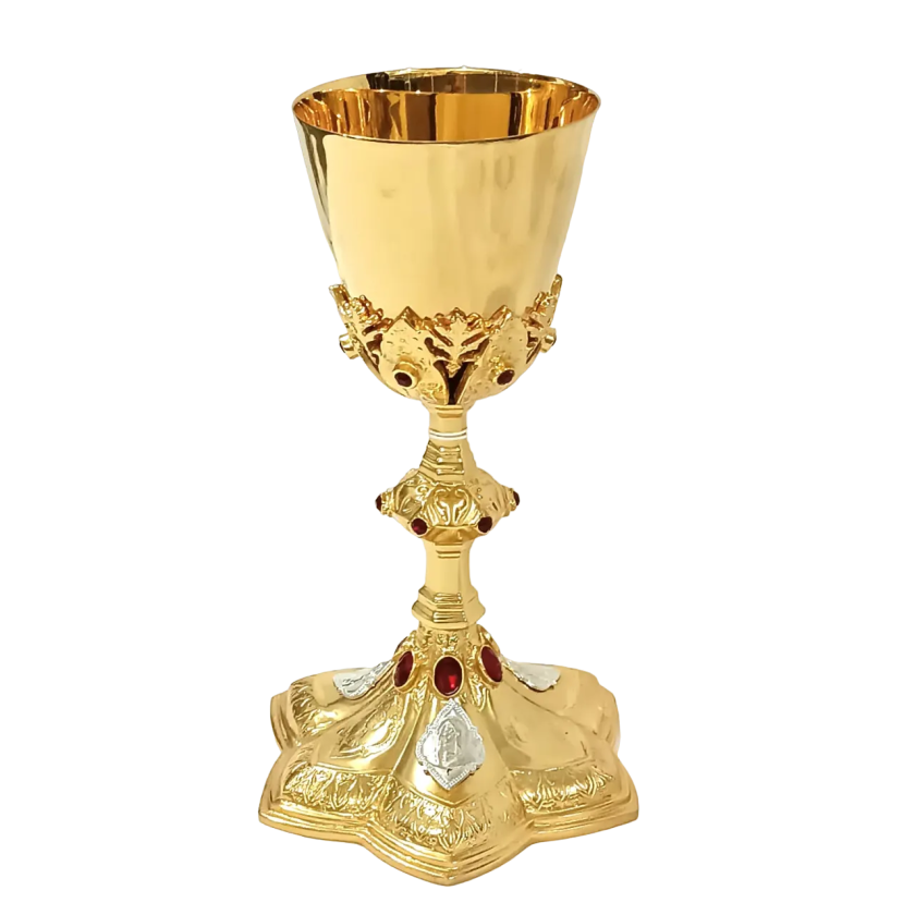 O belo Cálice Notre-Dame foi assim batizado para honrar seus ricos elementos góticos, detalhes que tornam esta imponente peça um dos mais belos cálices de nossa linha! Além disso, o nome é o mesmo que “Nossa Senhora” em francês, com o qual desejamos homenagear a Santíssima Mãe de Nosso Redentor.