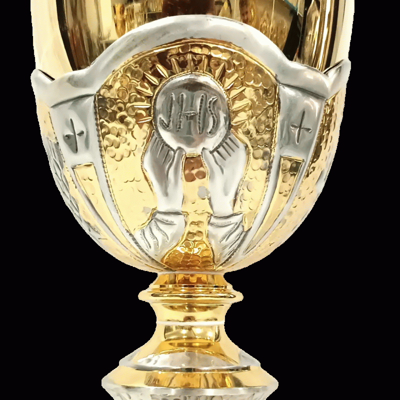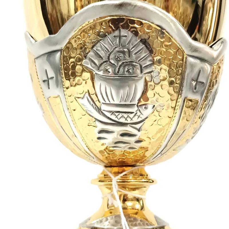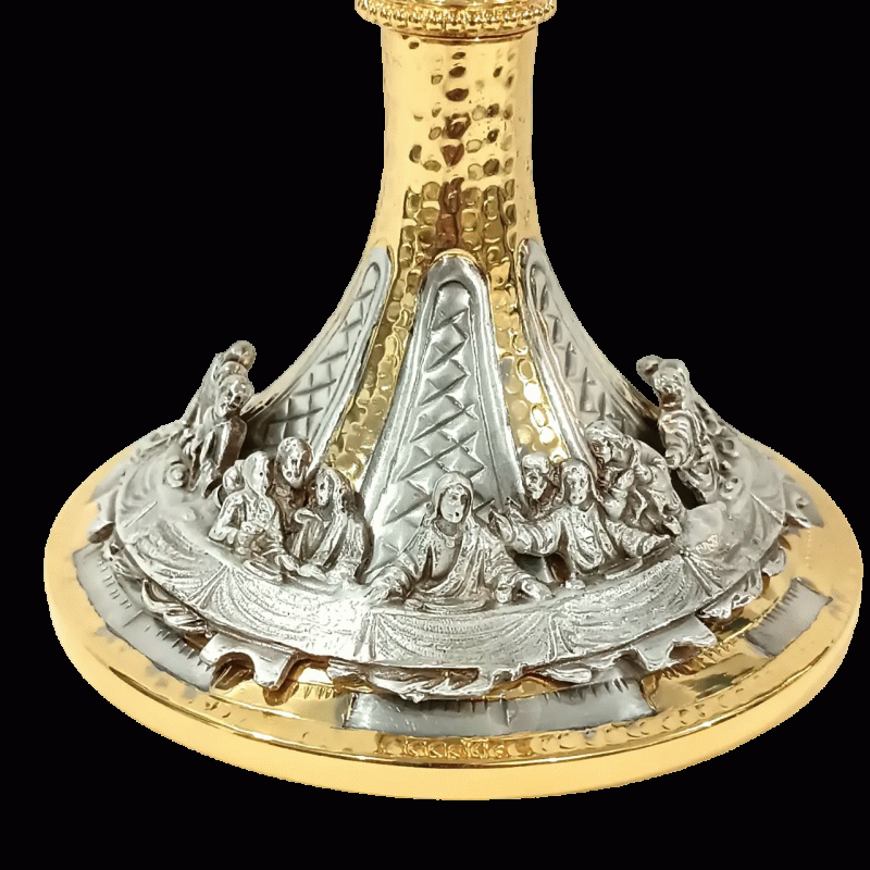 O Cálice Santa Cena é um cálice feito em repuxo, cinzelado (arte e esculpir o metal) à mão e com a cena da Santa Ceia fundida na sua base. Além de vários símbolos eucarísticos