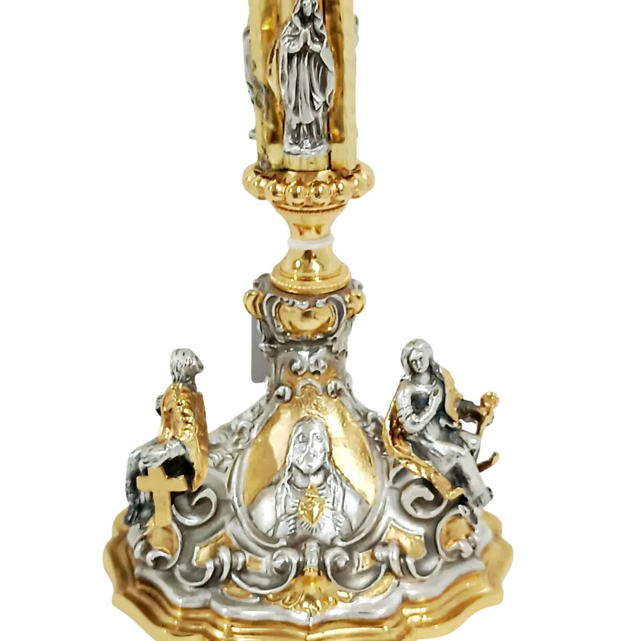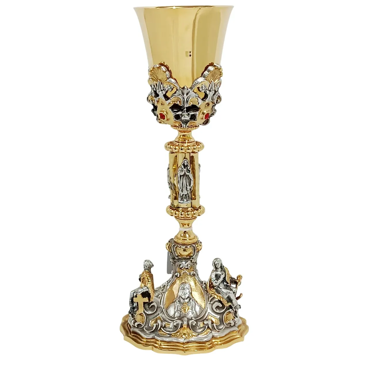 O Cálice São Pedro e São Paulo é riquissimo em detalhe. Na sua base, destacam-se a figura de Jesus e Seu Sagrado Coração, bem como Pedro e Paulo. Além de três estatuas representando as 3 Virtudes Teologais. Em dua coluna, a figura de Nossa Senhora. O trabalho artístico em alto-relevo transforma este cálice em uma verdadeira obra de arte sacra, ideal para celebrações solenes.