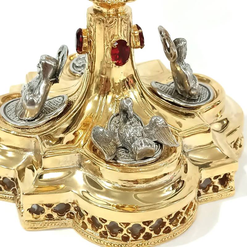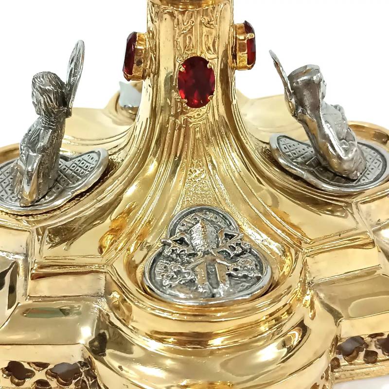 Um dos mais famosos cálices brasileiros. Um cálice topo de linha. Em sua base apresenta as figuras do: Brasão Pontifical, do Sagrado Coração de Jesus, do Imaculado Coração de Maria e do Divino Espírito Santo;