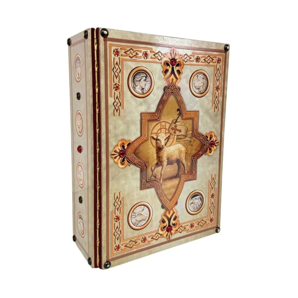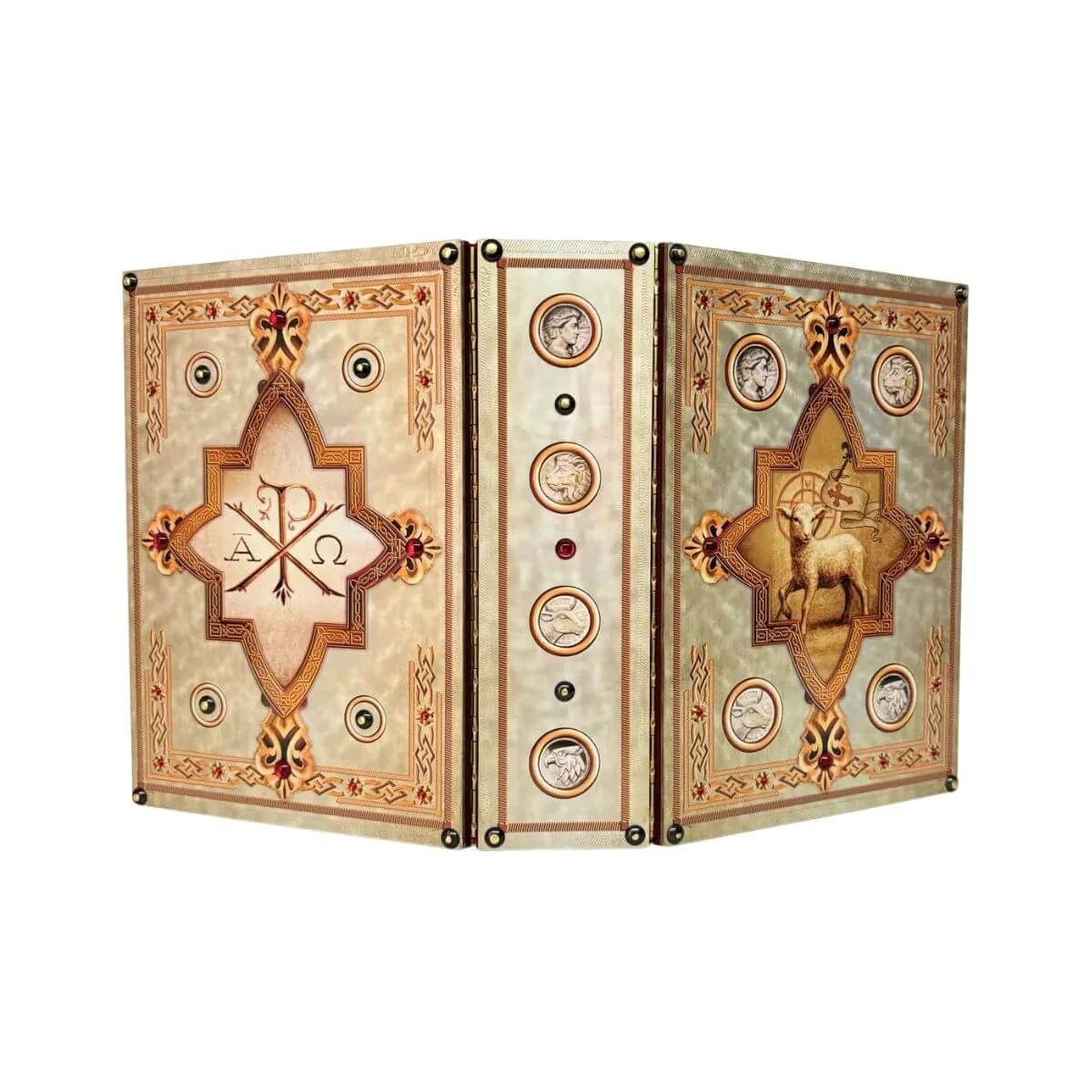 Capa para a 3ª edição do Missal Romano, em metal com banho em bronze, interior forrado com veludo.