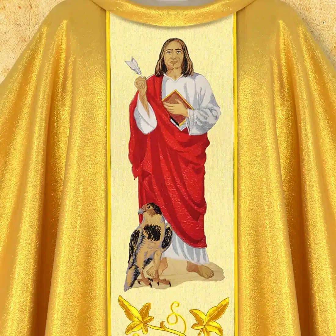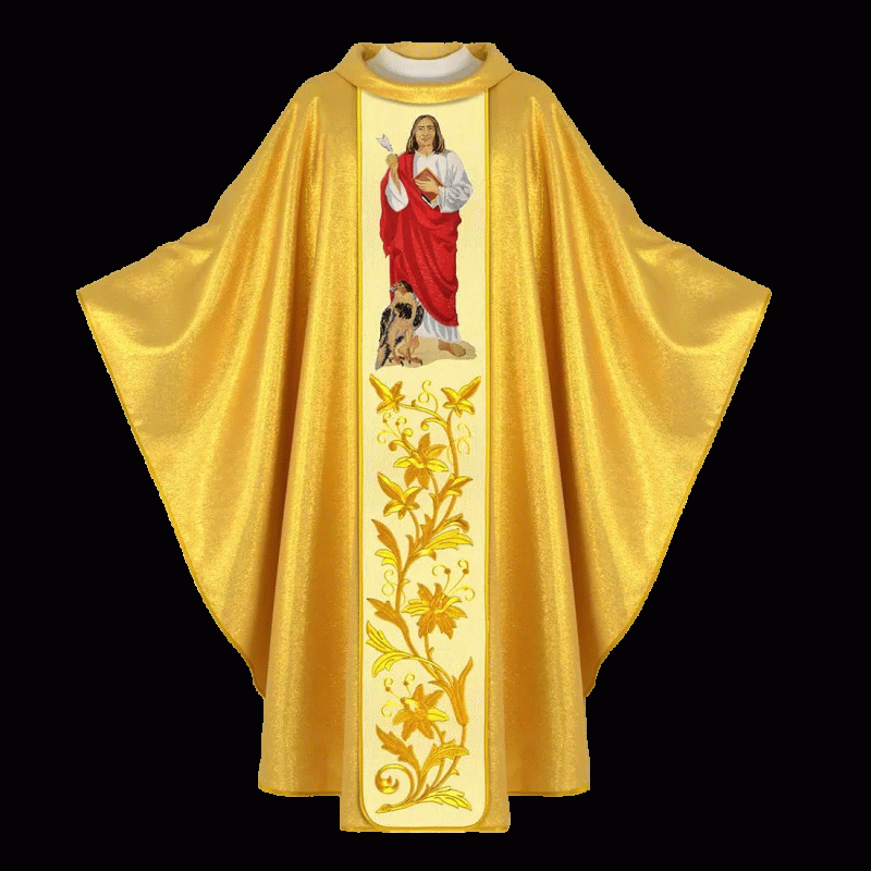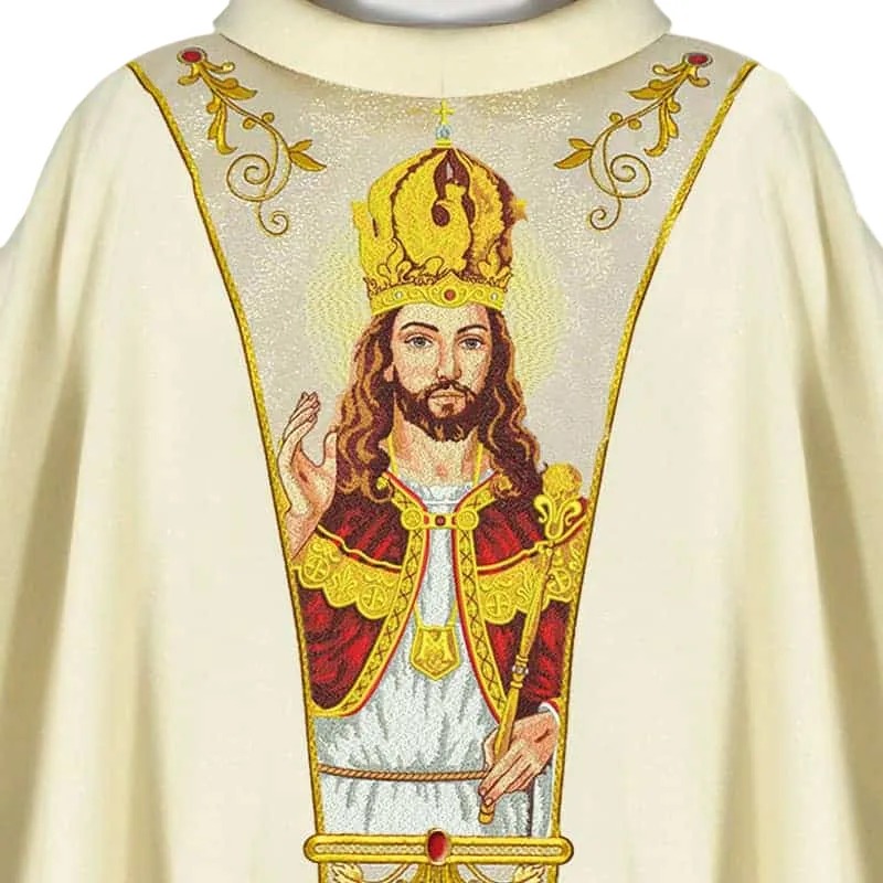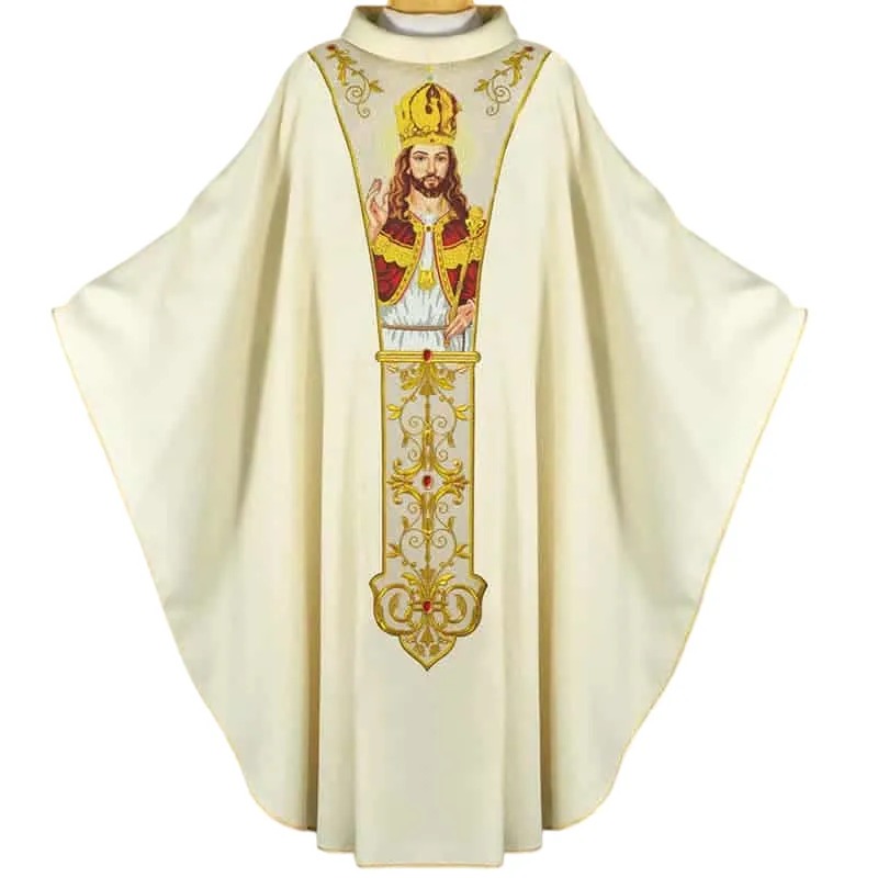 Casula com um lindo galão bordado na frente e atrás em alto relevo com fios dourados.