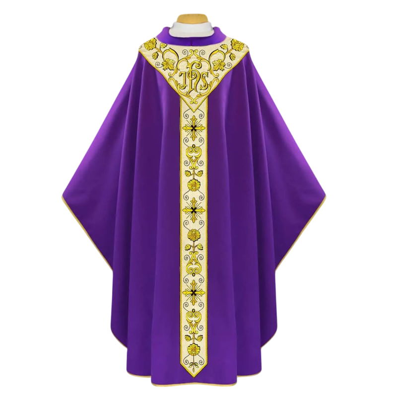 Casula com um lindo galão bordado com a belíssima imagem do IHS