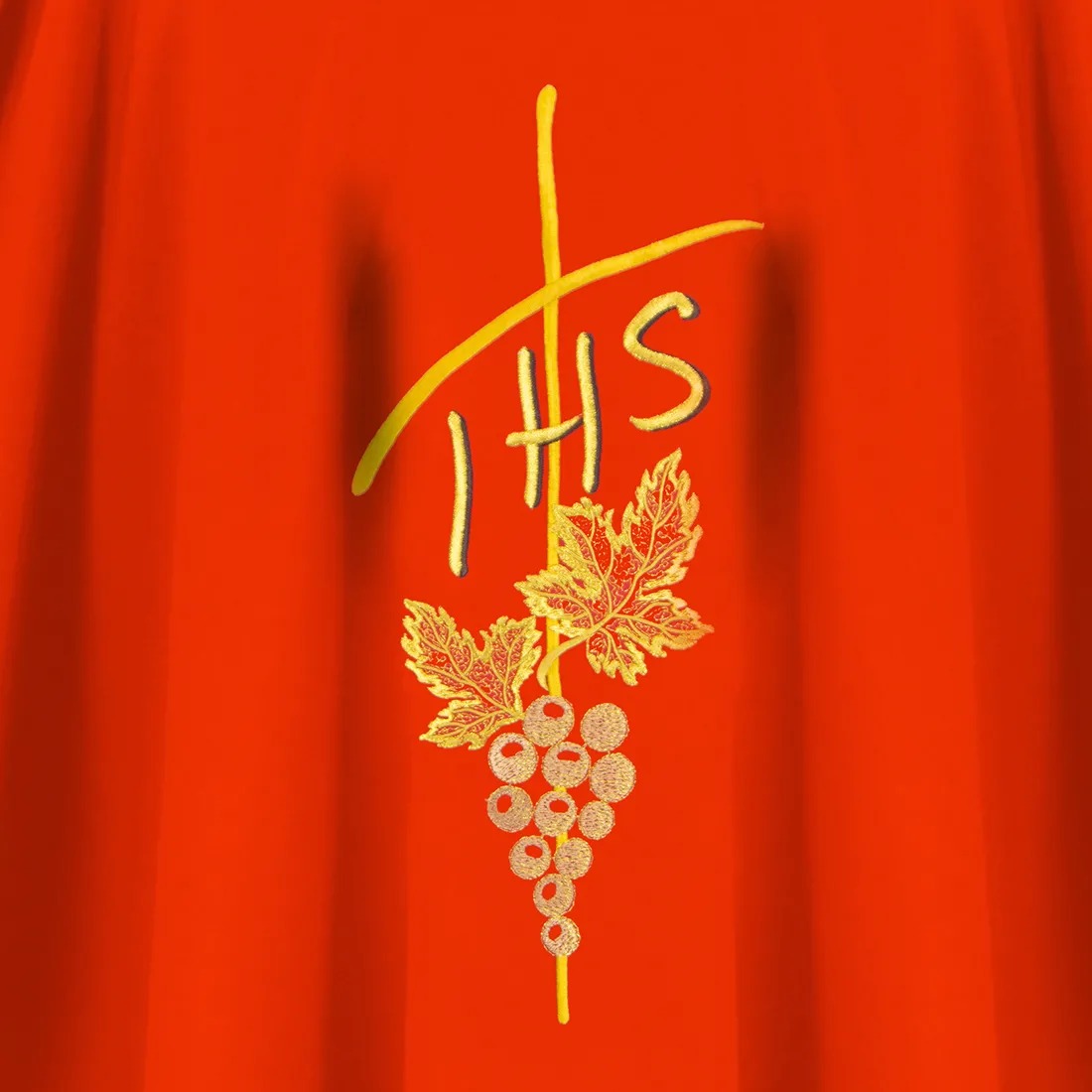 Casula gótica bordado em alto relevo com fios dourados.