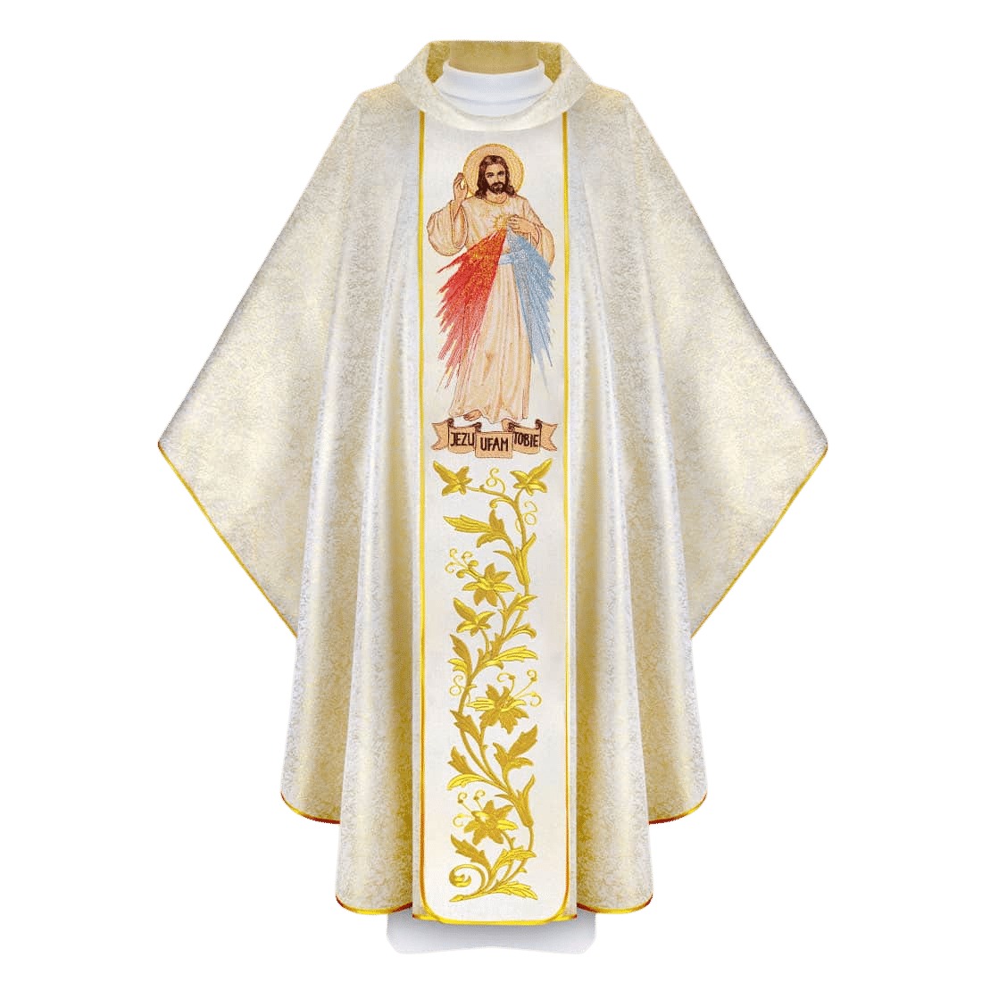 Casula em tecido “Papal Gold” em cru, subtilmente cintilante com fio de ouro.
