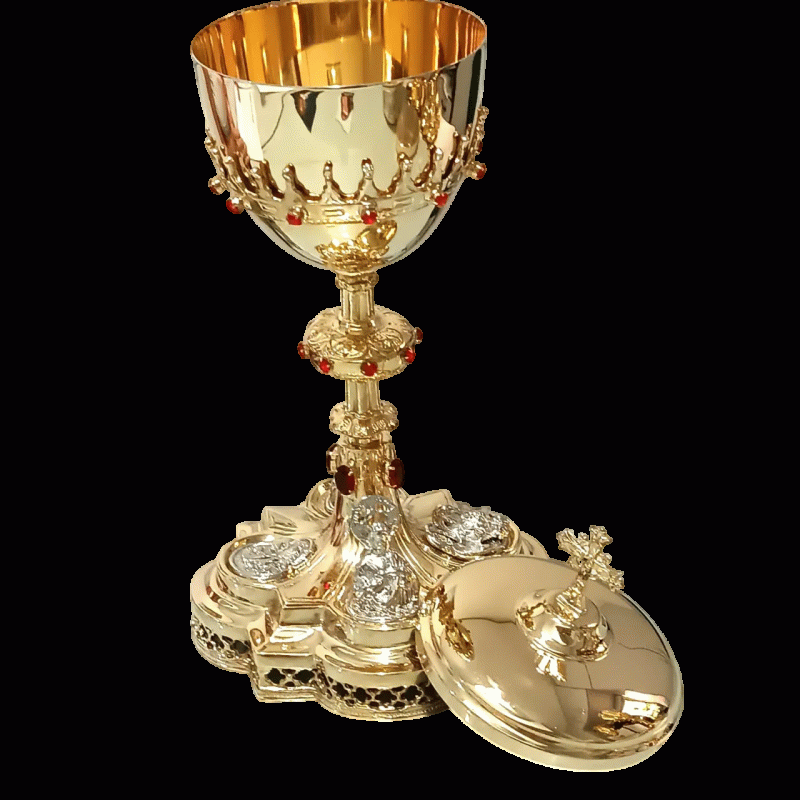 A Âmbula Vaticano em metal com banho de ouro 24k e pedras vermelhas é uma peça de excepcional beleza e significado religioso. Com uma altura de 32,5 cm e capacidade para 250 partículas de 3,3cm, ela é um objeto litúrgico de alta qualidade, ideal para uso em celebrações eucarísticas.