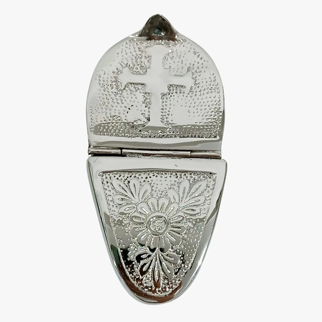 A colher para naveta é um acessório litúrgico essencial utilizado nas celebrações com incenso, auxiliando na colocação do incenso no turíbulo durante os ritos religiosos. Esta peça é cuidadosamente fabricada em metal de alta qualidade e recebe um refinado banho de ouro 24k, que proporciona brilho elegante, excelente durabilidade e acabamento nobre.