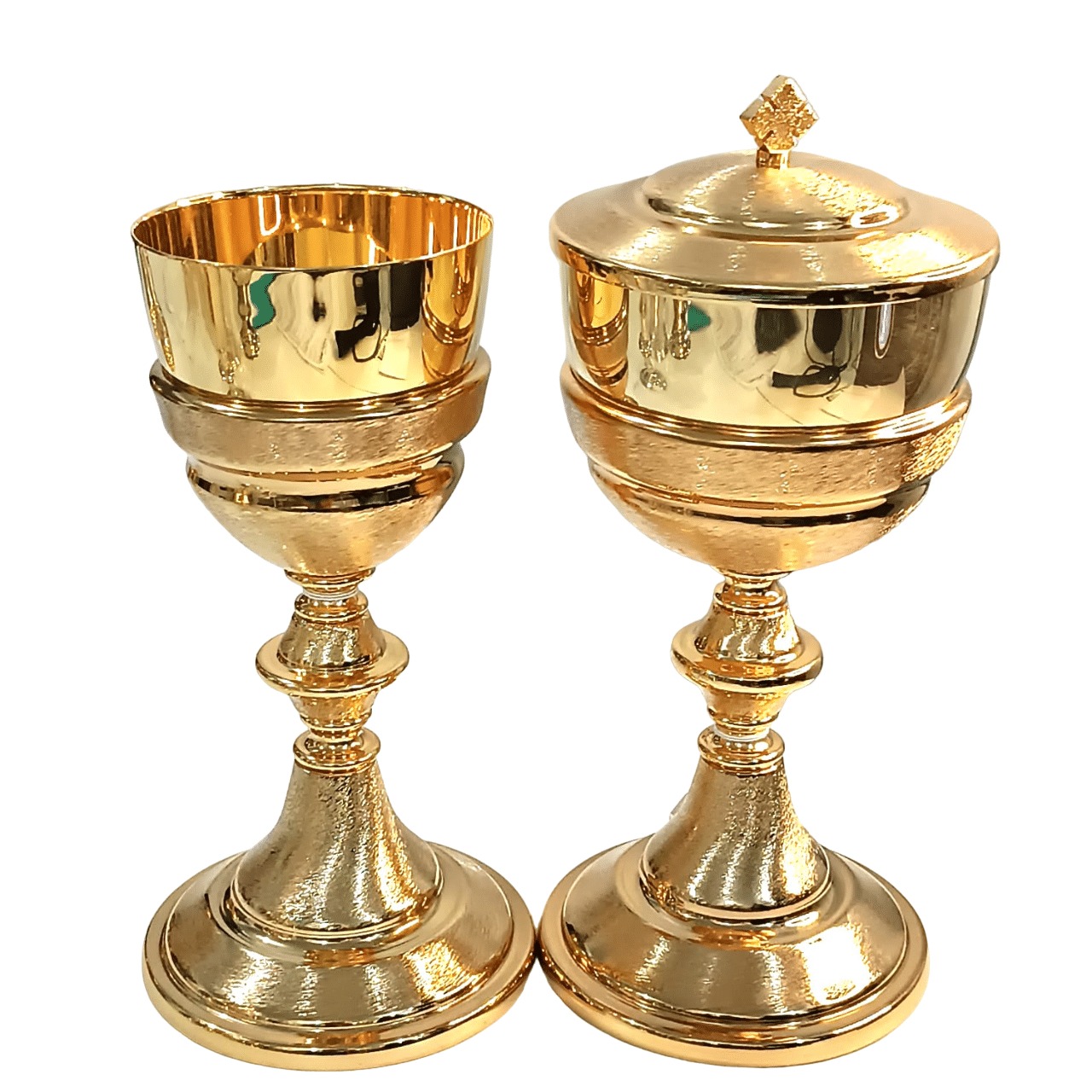 Cálice de latão com acabamento escovado e totalmente banhado a ouro 24k