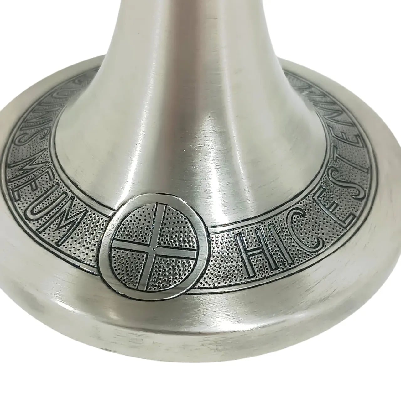 As peças apresentam inscrições latinas e detalhes em relevo, com base decorada pela frase “Hic est enim calix sanguinis mei” no cálice, simbolizando o cálice do Sangue de Cristo. E “Hoc est enim Corpus Meum” na âmbula, simbolizando o Corpo de Cristo.