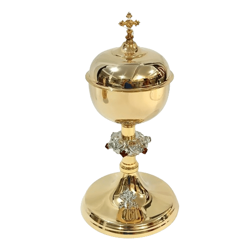 Conjunto São Pedro é uma opção de vaso sagrado singelo e digno. Ele carrega em sua base as Armas Pontifícias.