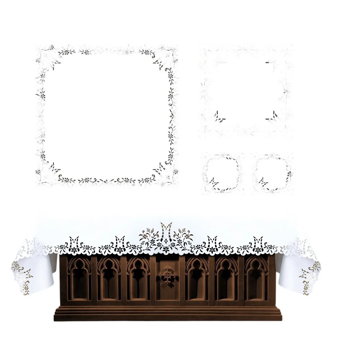 Conjunto de altar vazado a laser, feito em tecido se altíssima qualidade, resistente a manchas.