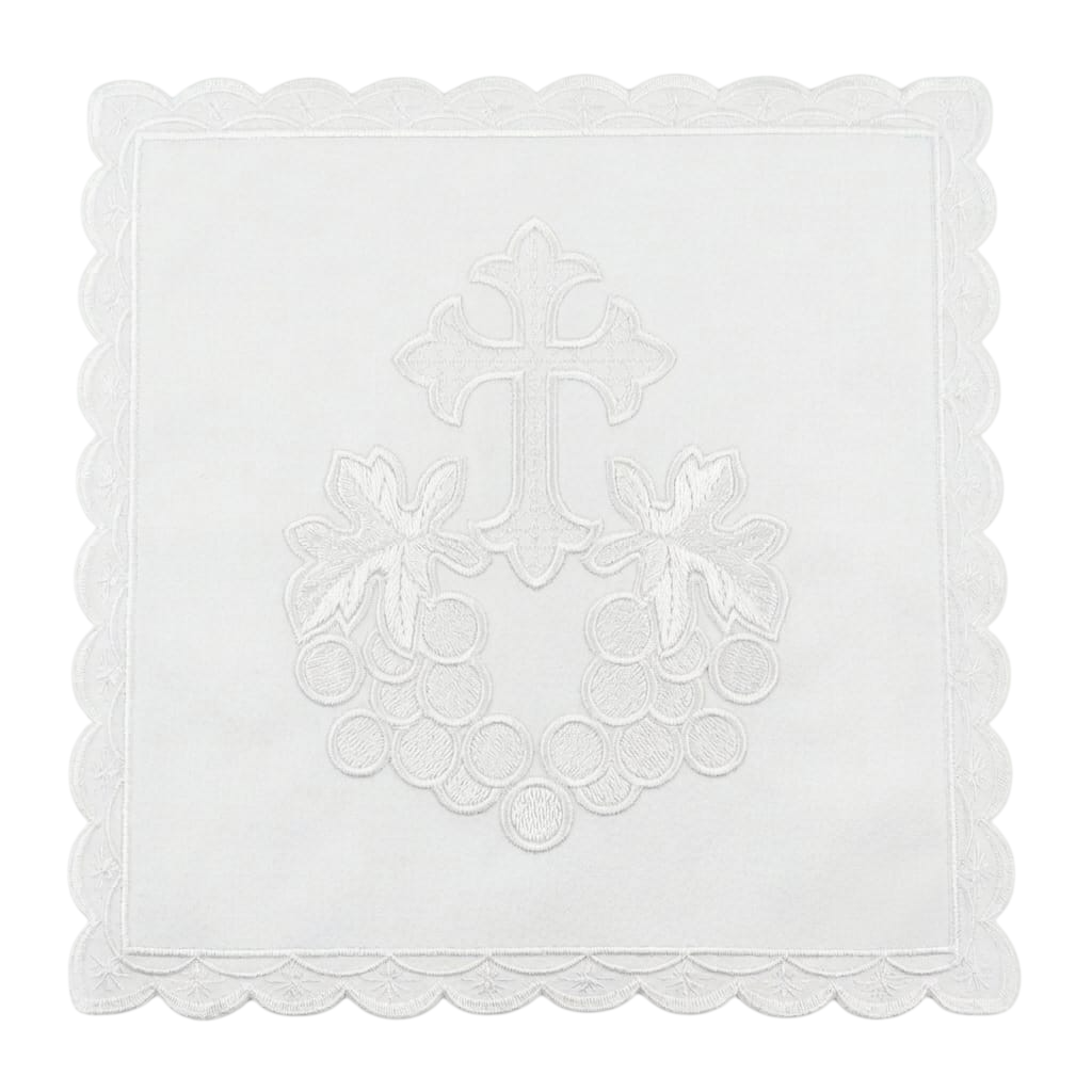 O Conjunto de Alfaias Bordado Uvas é uma peça de elevada nobreza, confeccionada com bordado de altíssima qualidade, apresentando acabamento impecável e riqueza de detalhes que valorizam ainda mais a celebração eucarística. Seu bordado perfeito com o simbolismo das uvas remete diretamente ao vinho consagrado, trazendo significado litúrgico e beleza à mesa do Senhor.